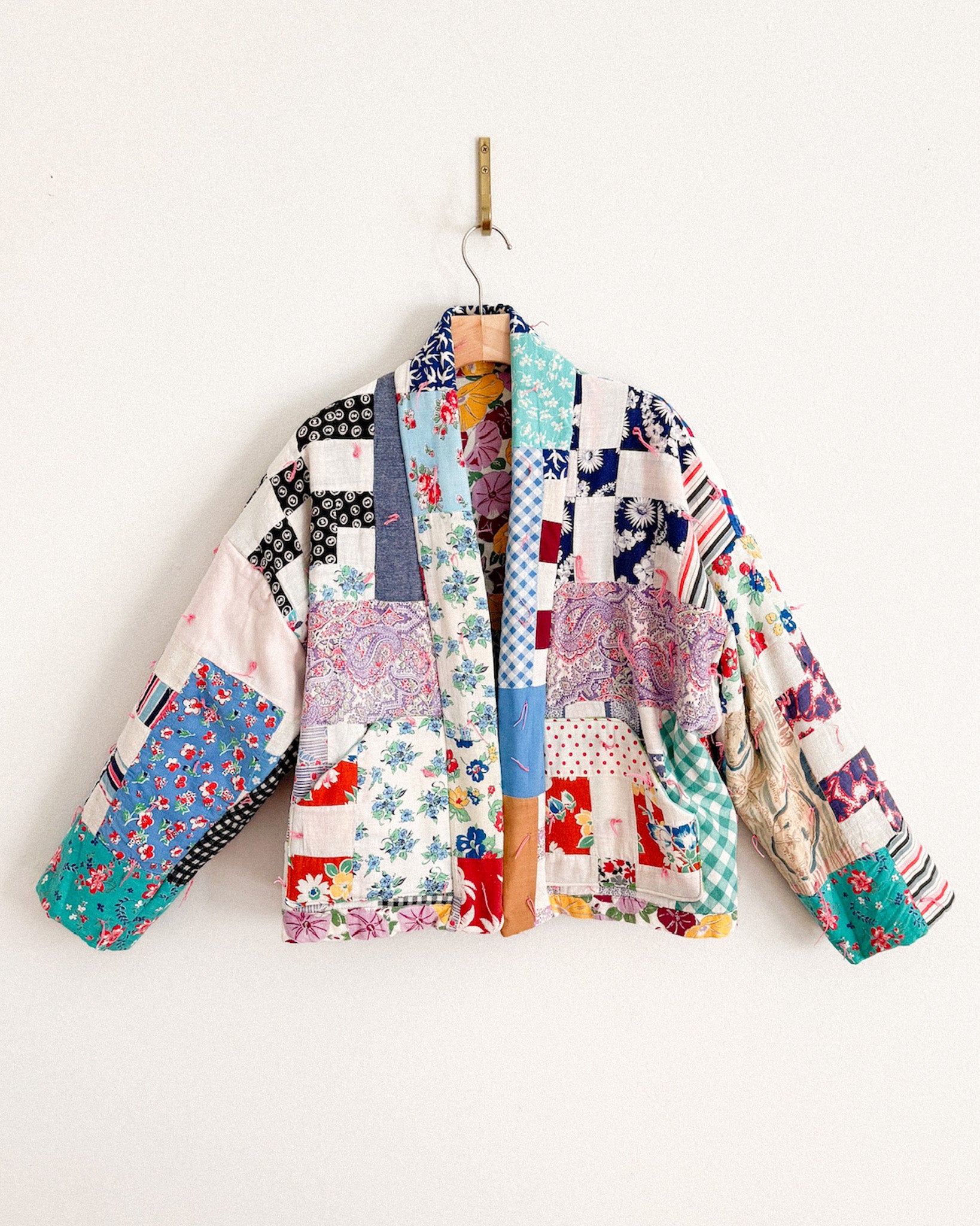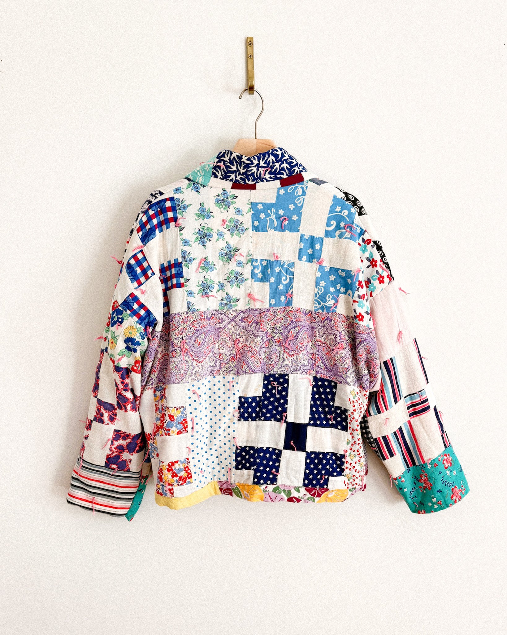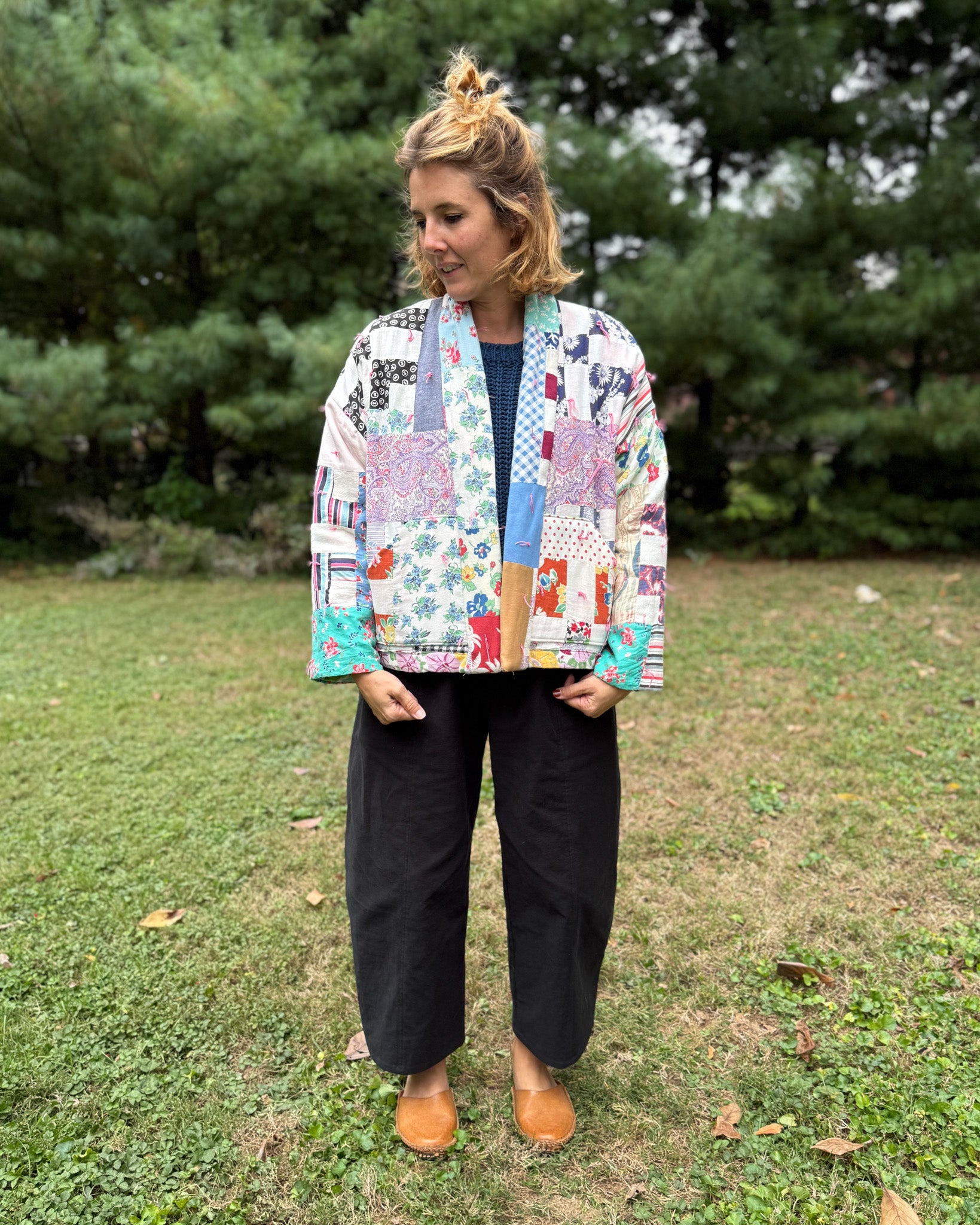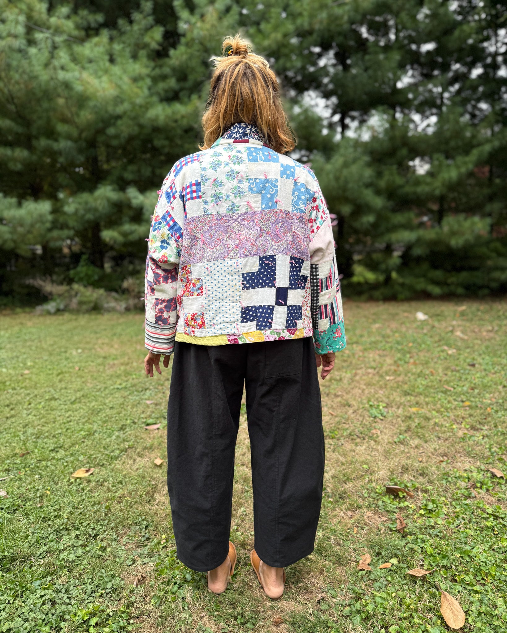MADE FROM A VINTAGE HAND SEWN QUILT. KNOTTED YARN DETAILS